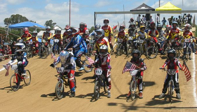 Since BMX is a "short sprint" sport (with most races lasting 35 to 45 seconds), the start of a race is usually the most important. When you first begin racing, you'll most likely do what is called a one-footed start. Which is having one foot on your pedal and the other foot acting as a "kickstand," resting on the ground to keep you balanced. The majority of riders start with their right foot "forward" (on the pedals). Much like skateboarders or surfers, racers who line up in the gate with a left foot forward are called "goofy footed." Find out which feels most comfortable - there is no right or wrong way.